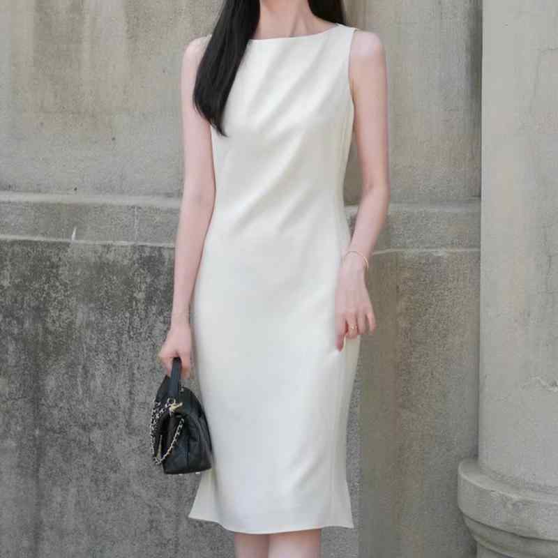 ワンピース レディース ノースリーブ 膝丈 フィッシュテールスカート タイト エレガント フォーマル 高見え アセテート ポリエステル ミディアム丈 無地 スリムフィット OL きれいめ 米白 黒 紫 白 S M L XL・カテゴリ: ワンピース・スタイル: エレガント・柄: 無地・素材: アセテート繊維.ポリエステル・スカート丈: ミモレ丈・スカートタイプ: マーメイドスカート・ウエスト: ハイウエスト・袖丈・袖タイプ: ノースリーブ・カラー: オフホワイト.ブラック.パープル.アイボリー・サイズ: S.M.L.XL・年齢層: 25-29歳・シルエット: H型・ディテール: 立体裁断.スリムフィット