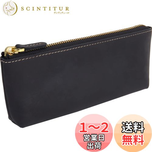 【送料無料】[亀登鞄製作所] ぺンケース 筆箱 スリム 革 大容量 シンプル 大人 (牛革の最表面のみで作られたペンケース) (YKKファスナー採用) おしゃれ レザーペンケース メンズ 革筆箱 本革 軽量 ビジネス (大容量, ブラック)