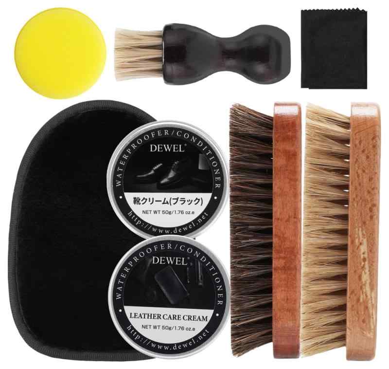 [DEWEL] 靴磨きセット シューケアセット かんたん 保湿力 栄養・保革・ツヤ出し 補色 日本語説明書 初めての方・ギフト・贈り物に シューズケア きず消し 艶出し革靴 手入れ セット 馬毛、豚