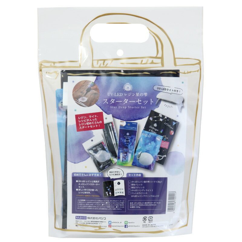 星の雫 スターターセット 1セット パジコ UV LED レジン液 レジン キット クリア 透明 UVレジン液 劣化 しにくい モールド 太陽光 コーティング 初心者 初めて レジンクラフト レジンアクセサリー ハンドメイド クラフト 早い 硬化