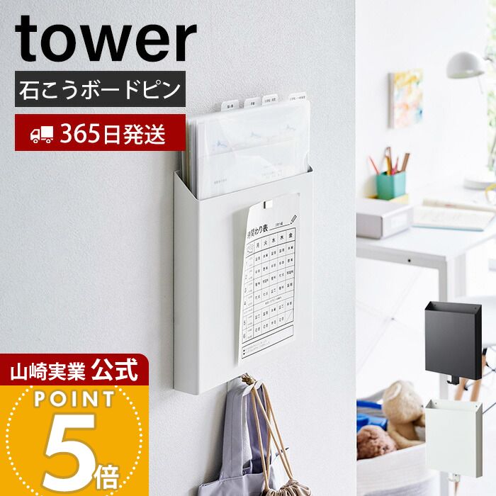 【365日出荷】山崎実業 石こうボード壁対応 プリント収納ホルダー タワー tower 公式 壁面収納 浮かせる収納 プリント かばん 手提げ袋 雑誌 タブレット 石こうボードピン 木ネジ フック 2020 2021