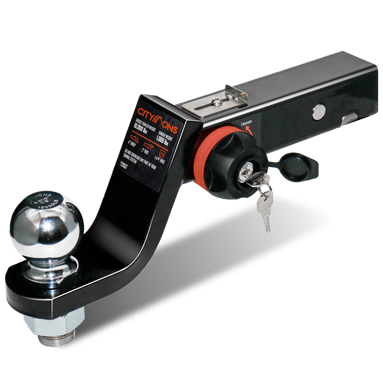 (シティモンズ) 遠藤ヒッチトレーラーボールマウント 揺れ防止 4インチドロップヒッチ 2-5/16インチボール付き 2インチレシーバー用 ロック付き牽引ヒッチ RV/トラック/ヨット/ATV/UTV用 10000ポンド GTW