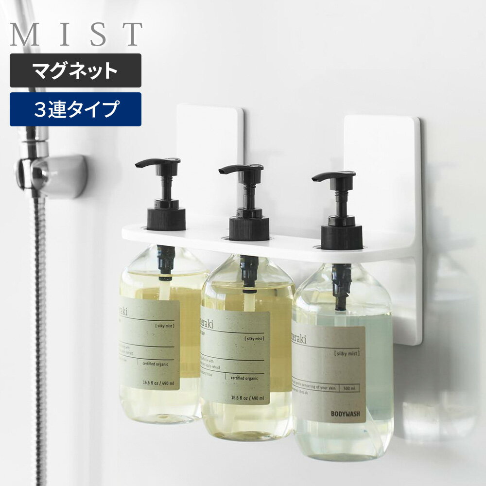 山崎実業 浴室収納 マグネット ディスペンサーホルダー 3連 ホワイト 10282 | MIST ミスト ボトルホルダー ポンプ 浴室 磁石 壁面 浮かせる 収納 洗面所 お風呂 バス ぬめり防止 白