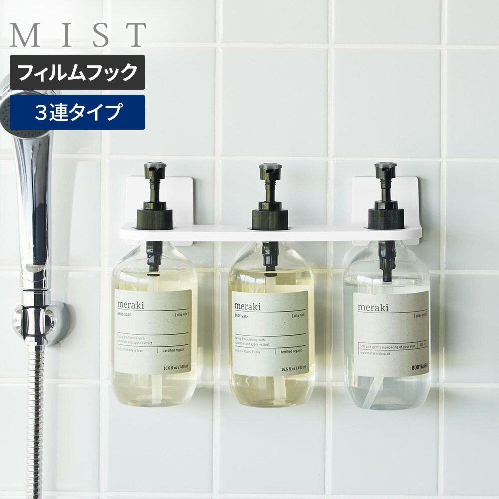 山崎実業 浴室収納 フィルムフック ディスペンサーホルダー 3連 ホワイト 10283 | MIST ミスト ボトルホルダー ポンプ 浴室 貼る 壁面 浮かせる 収納 洗面所 お風呂 バス ぬめり防止 白