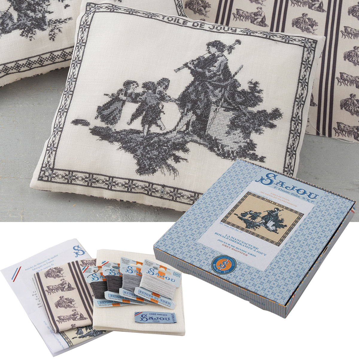 輸入 クロスステッチキット | SAJOU( サジュー )トワルドジュイ物語 クッション キット [ビニウ]| 輸入 刺繍キット クロスステッチ 刺しゅうキット クッション カバー ハンドメイド 手芸 世界 フランス