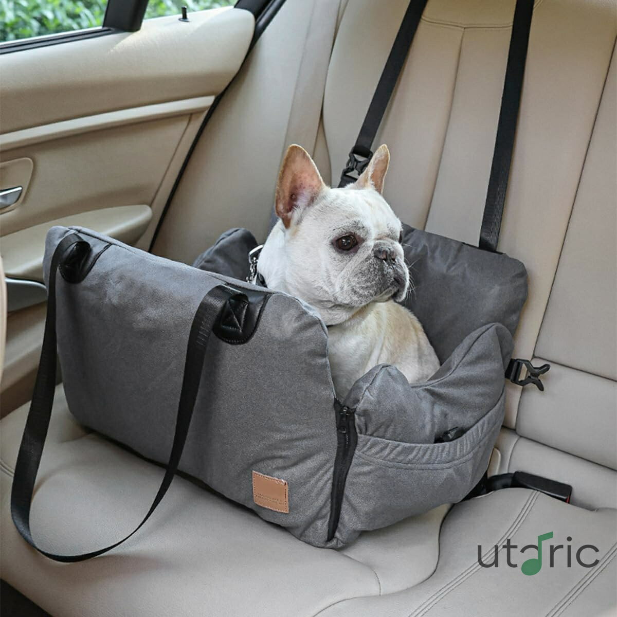犬 車ペット用 ドライブシート 犬 猫用 キャリーバッグ 飛び出し防止リード付き 汚れ防止 防水 耐摩 滑り止め&フック付 お手入れ簡単 清潔 通気 ボックス 水洗い ドライブベッド 犬車用ペットシート カー用品 助手席 後部座席 小型犬用車載用 (グレー)