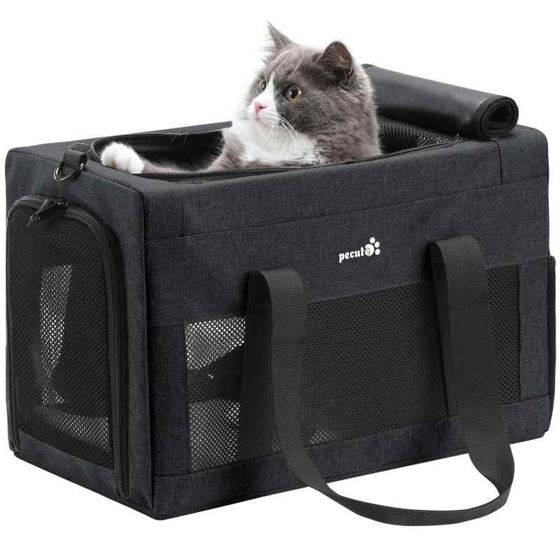 Pecute ペットキャリー バッグ 手提げ 猫 キャリー ショルダー ペット キャリーバッグ 猫 ウサギ 小型犬 小動物用 リュック 通気性 折りたたみお出かけ ドライブ 旅行 通院 防災 避難用
