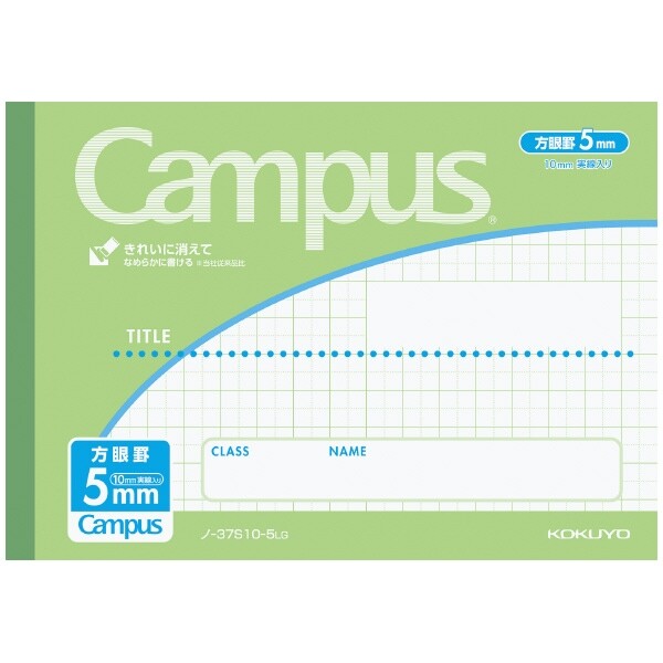 商品名コクヨ キャンパスノート B6 用途別 5mm方眼 10mm実線入り ハーフサイズ グリーン 小学生 省スペース説明タブレット端末やパソコン前を省スペースに使える!セミB5ノートの半分のサイズ「キャンパスノート」です。小学生用にも便利に使える「方眼罫線」です。10mm実線入の5mm方眼罫なので、文字もグラフもキレイに書けてます。両面に、タイトル・名前欄を設けているため、右開き・左開きどちらでも使え、どの教科にも対応しています。【サイズ】ハーフサイズ (約126×179mm)【罫内容】5mm方眼罫 (10mm実線入)【枚 数】30枚【材 質】中紙=上質紙(森林認証紙)【紙 厚】70g/【背クロス】紙クロス(ラミネート加工)【製 本】無線とじ 品番ノ-37S10-5LGこの商品について 必ずご確認ください配送についてメール便での配送になります。→ご利用の際は必ずお読みください 送料について ご注文合計額が¥1000 (税込)以上で、全国一律『送料無料』です。 →詳細はこちら返品→返品・交換・キャンセルについて※メール便は、日時指定、代金引換、ギフトラッピング・熨斗サービスに対応しておりません。