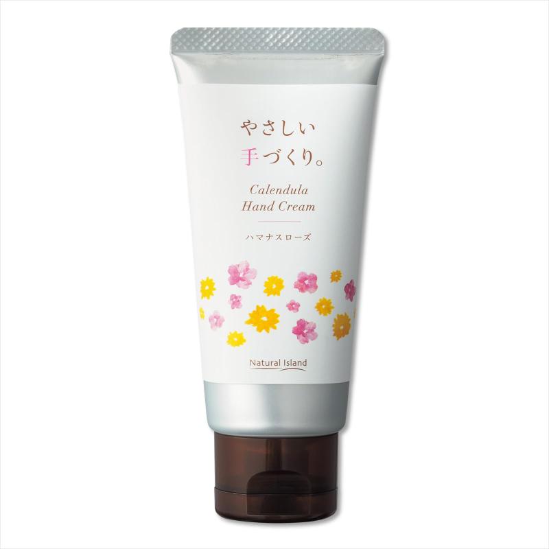 ナチュラルアイランド やさしい手づくり。ハマナスローズ 45g 甘く華やかなハマナスローズの香り ハンドクリーム カレンデュラ【甘く華やかなハマナスローズの香り】 北海道の花にも指定されている「ハマナス」は、うっとりするような甘い香り。美肌成分も贅沢に配合し、明るく透明感のある手肌へ導きます。【カレンデュラの修復力で、荒れた手肌を癒す】 カレンデュラはビタミンAやフラボノイドが豊富で、傷ついた肌を修復して保護する効果が。乾燥や水仕事で荒れた手を、しっかりケアしてうるおします。【手の日焼けが気になる方】 くすみやUVダメージをケアする美容成分を配合。明るく透明感のある手肌へ導きます。【あなたの手をやさしく温もりのある手に】 雪国の乾燥に負けないくらいしっとりするクリームは、伸びもよく、塗った後もふっくら。水をしっかりはじくタイプです。うるおいを与えるだけでなく、日々の肌荒れを予防・修復したりシミやたるみを予防します。【使用方法】指に大豆一粒程度をとり、ゆっくりとのばしながら肌になじませます。 水をしっかりはじくプロテクトタイプのため、お洗濯などの家事やお出かけ前の日々のケアにお使いいただけます。