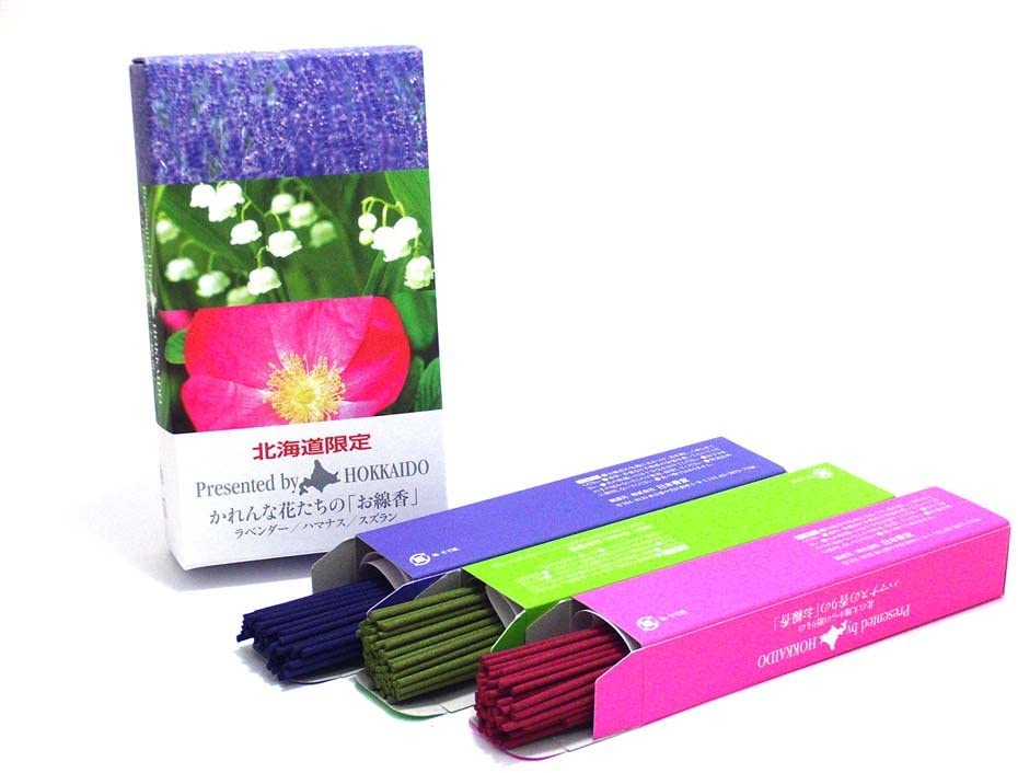 北海道限定 かれんな花たちのお線香【ラベンダー/ハマナス/すずらんの香り】