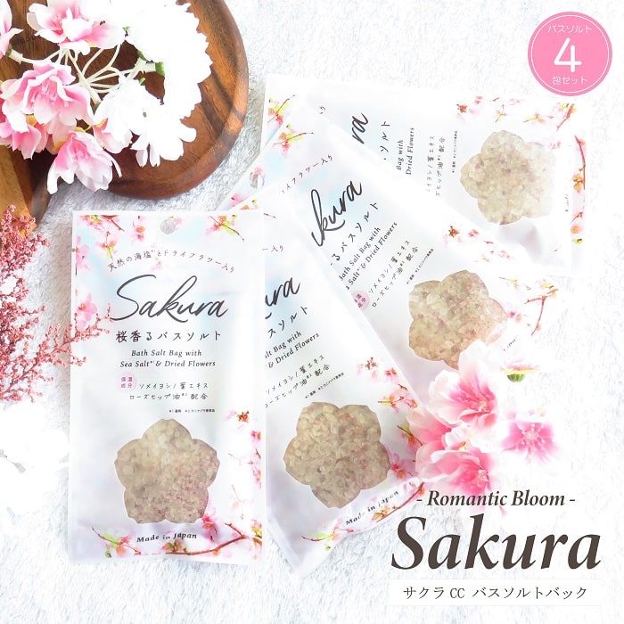 バスソルト 入浴剤 サクラCC バスソルトバッグ 4包セット ドライフラワー入り 天然海塩 保湿成分配合 ソメイヨシノ葉エキス 桜 アロマ フレグランス