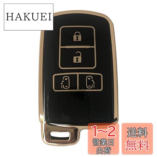Kinotaka トヨタ車用 TPU製スマートキーケース 4つボタン 両側スライド タイプ 80系ヴォクシー ノア ハリアー60系 エスクァイア アルファード シエンタ クラウン オーリス カムリ キーカバー専用設計 アクセサリー (ブラック)