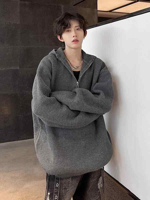 ニット メンズ 男性用 ハーフジップ パーカー 秋冬 ルーズ 慵懶風 高街 痞帥 アウター