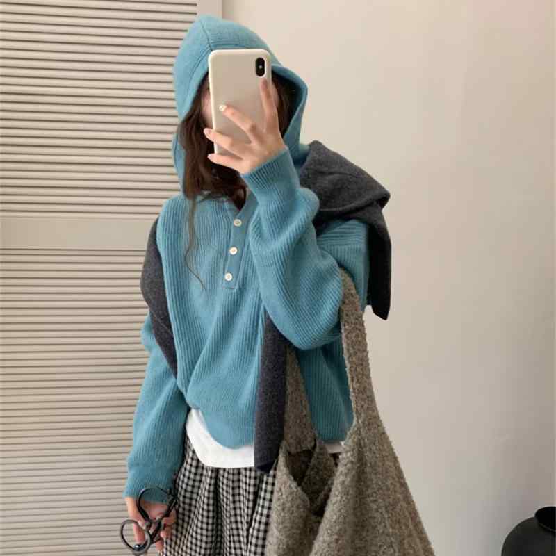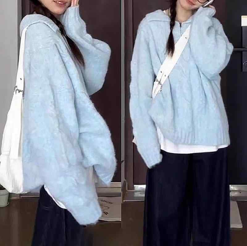 2ニット レディース 秋冬 ハーフジップ パーカー プルオーバー 普段使い ゆったり かわいい カジュアル トップス 韓国
