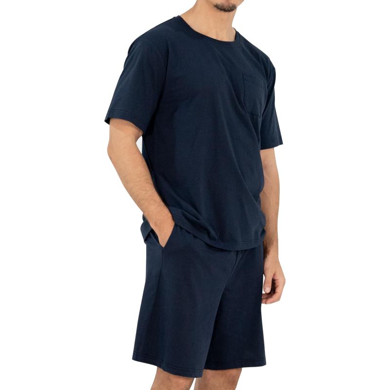 [Winthome] パジャマ メンズ 夏用 綿100% 半袖 通気性 上下セット ルームウェア Tシャツ ハーフパンツ ゆったりサイズ感 肌に優しい 薄手 吸汗速乾 (JP, アルファベット, L, ネイビー)【綿100%のメンズパジャマ】素肌に優しい綿100%のTシャツ素材を使用した、柔らかくしなやかな肌触りです。薄手の綿素材で軽量、吸汗速乾性と通気性に優れ、持ち運びにも便利、暑い夏でも快適にお過ごせる良いパジャマです。【快適なデザイン】半袖Tシャツとハーフパンツのセットで、さりげないデザインが魅力です。半袖Tシャツは胸元にシンプルなポケット付き、丸首タイプはすっぽりかぶって着られるし、着脱便利なかぶりタイプのパジャマです。ハーフパンツはサイトに便利なポケット付き、お散歩など、ちょっとしたお出かけでも着れるので、重宝されるパジャマ上下です【通気性抜群】薄手の綿素材は吸汗速乾機能により、すばやく湿気を排出し、肌をドライに保つことで、常に爽快な状態を維持し、暑い夜でも爽やかで快適な睡眠体験を楽しむことができます。【ゆったりサイズ感】身幅と肩幅は広めに仕上げました。大柄な方もゆったりご着用頂けます。動きやすさを追求。ウエストは総ゴム仕様で着脱しやすく、サイズ調整可能なスピンドルコードが入っているので、不快を感じさせないように仕上がりました。【多用途に着用可能】部屋着としてはもちろん、寝間着としても活躍します。快適なルームウェアをお探しの方におすすめ。ぜひこの夏、涼しく過ごしてください弊社は十分に検品を行い発送しております、品質は安心出来ます、万が一商品不具合の場合は「注文履歴」→「販売:Winthome」→「質問する」でご連絡をいただきますようお願い申し上げます。