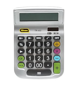 【中古】IDENA TR 450、505292-12桁ディスプレイ付きデスクトップ電卓、電池式 - 太陽光発電 - 平方根、割合計算、メモリ機能、シルバー