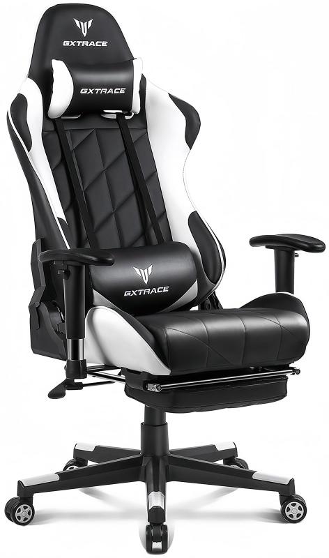 GXTRACE ゲーミングチェア オフィスチェア ゲームチェア デスクチェア パソコンチェア オットマン付き 人間工学 165度リクライニング機能 ハイバック テレワーク椅子ゲーミ【人間工学に基づいた設計】このゲーミングチェアは、人間工学の理念に基づいて設計されており、スタイリッシュなデザインと快適性を両立。首、肩、腰、お尻の4点をしっかりサポートし、高級車のシートに座っているような感覚を実現しました。ハイバックデザインの背もたれは、頭から首にかけてのラインにフィットし、リラックスした姿勢をキープ。さらに、ランバーサポートが腰のS字カーブを支え、理想的な姿勢を保ちながら負荷を軽減します。座面の高さは7cm調節可能で、ゲーミングデスクや学習机の高さに簡単に合わせることができます。ングチェア【長時間座っても疲れにくい設計】 このゲーミングチェアは、柔らかすぎず固すぎない高密度モールドウレタンを採用。耐久性に優れ、型崩れやヘタリが起こりにくく、上質な座り心地を実現します。バイオニックカーブの背もたれと腰クッションが腰を重点的にサポートし、姿勢を矯正。腰への負担や疲労を軽減するため、長時間座っても疲れにくい設計です。さらに、椅子全体には汚れに強いPUレザーを使用しており、水をこぼしても拭くだけで簡単にお手入れが可能です。【フル装備のゲーミングチェア】 座面の高さは7cm調節可能で、リクライニング機能は最大165°まで対応。揺りかごのようなロッキング機能も搭載しています。アームレストは高さ7cm、角度±15°で調節可能で、腕のストレスを軽減。弾性があり衝撃を吸収する樹脂製静音キャスターは、耐摩耗性に優れ、床を傷つけません。オットマン、ヘッドレスト、ランバーサポートが正しい姿勢を保ち、快適なゲームプレイをサポート。また、爆発防止座面ブラケットは厚さ約2mmの鋼製で、強い圧力に耐えるため、安全性と安定性に優れています。【お好みの姿勢でリラックス】 背もたれは90°から165°までスムーズにリクライニング可能。自由に座ったり横になったり、お好みの姿勢でくつろげます。収納可能なオットマン付きで、昼寝時に足を楽な姿勢でリラックスできるほか、使用しない時は座面下に収納できるため省スペースで便利です。ゲームプレイ中に姿勢を変えたり、休憩を取るのに最適な設計。学生の勉強椅子や学習椅子として、また社会人の仕事や在宅ワーク用のオフィスチェアとしても最適なPCチェアです。【安心のサービス】 この製品の耐荷重は最大約165kgで、推奨体重は30~80kg、推奨身長は140~185cmです。お客様に長く安心してご利用いただけるよう、サービスをご用意しています。専用工具と日本語の組立説明書が付属しており、さらに取り付け・取り外しの動画も提供可能です。万が一、当店でお買い上げいただいた製品に不具合が生じた場合には、無償で不良箇所の部品交換または新品との交換をさせていただきます。どうぞご安心の上、お買い物をお楽しみください