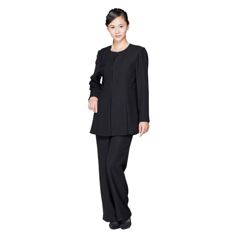 [SORITEAL] 喪服 パンツスーツ ロングジャケット レディース ブラックフォーマル 冠婚葬祭 礼服 葬式 法事 30代 40代 50代 2点セット セットアップ ブラック 7~21号 110313776
