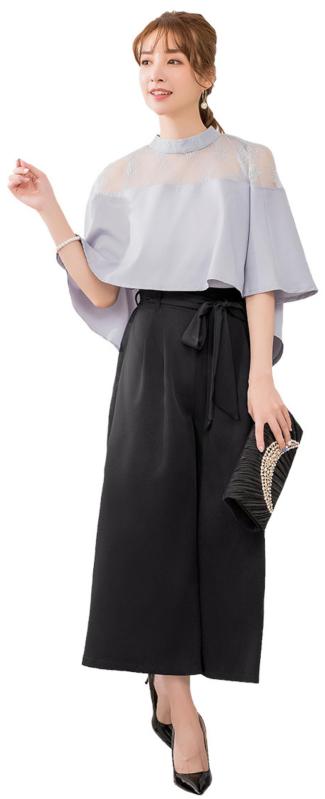 [ZHENGTU] レディース パンツスーツ セットアップ レースブラウス ケープ風 パンツドレス テーパードパンツ パーティードレス 結婚式 披露宴 お呼ばれ