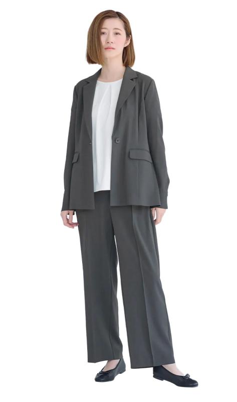 [Yino] (イノ) スーツ レディース パンツスーツ ジャケット+テーパードパンツ ウエストゴム ポケット 体型カバー 着瘦せ ビジネス セットアップ 洗える フォーマル 通勤 ママ 卒業式 春秋