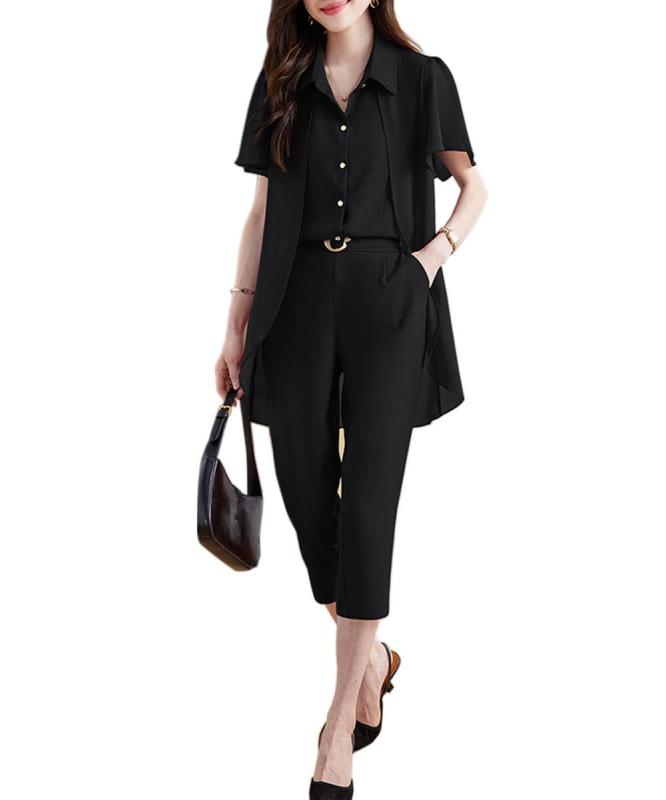 [DYIOPMFGZ] CHUMO セットアップ レディース スーツ パンツスーツ トップス パンツ 上下 2点セット シフォン 半袖 七分丈 薄手 おしゃれ シンプル 気質 エレガント 着痩せ カジュアル 通勤 夏