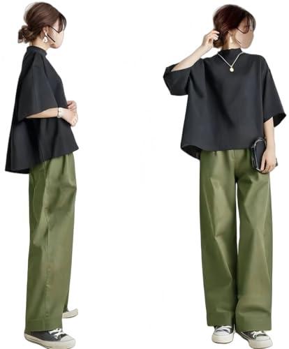 [YUANYUAN] セットアップ レディース 2点セット トップス&ワイドパンツ パンツスーツ 夏服 スタンドネック 半袖 ハイウエスト ロング丈 カジュアル ゆったり 可愛い オシャレ シンプル 切り【高品質素材を使用した】しなやかな肌触りと仕立て映えのする上品な素材で、着心地抜群の上、体型カバーのため、窮屈感がなく、着痩せ効果も抜群ですゆったりとしたオーバーラインなので華奢に見せてくれて体型カバーも出来る優れものです。【流行の流れを参考して】定番のブラックトップスで、パンツがカーキ、グリーン、グレーとブラックなどの4色を選べ、カジュアルで女性の可愛さを最大開発、優しさの雰囲気を現れます。シンプルだけどこだわりのあるデザインで流行に左右されず、長く愛用できるのも嬉しいポイントです。【合わせやすい】半袖トップスがゆる感を出し、大人のトレントスタイル、気になる体型を綺麗にカバーできます。ロングパンツが敢えて美脚効果バッグンです。可愛くで、独自の縫製でしなやかで落ち着いた優しい印象を与えてくれます。【実用性が高い】コーディネートとしては、それだけセットでお出かけはもちろん、ジャケットやカーディガン、アウターを羽織ってインナーとしてもお使いいただけ、帽子、スニーカー、パンプスと合わせても素敵です。お出かけ、二次会、レディースデート、披露宴、通学、旅行、学園祭、女子会など場合で自分を演出してくれて大おすすめ春夏セットアップです。【幅広く使える】サイズ展開はSからLまでになっており、ジャストから大きいサイズまで好みなスタイルに着こなしができます。10代、20代、30代、40代、50代、60代と多くの方におすすめな上下セットです。1セットあれば幅広く使えるので、プレゼントやギフトにもいいですね。お洋服選びに困った時や、いざという時の最強アイテムとなるでしょう。