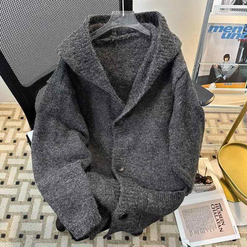 ニット カーディガン メンズ 秋物 アウター 長袖 パーカー おしゃれ 羽織り 上着 カジュアル 豪華感 ダークグレー・素材: ポリエステル繊維95%・スタイル: カーディガン・タイプ: ルーズ・ネックライン: フード付き・袖丈: 長袖・厚さ: 厚手・テイスト: 日本のレトロ・ディテール: バッジ・対象年齢: 24~35歳・対象者: ティーンエイジャー・シーズン: 年秋・生地: 化学繊維混紡・シーン: デイリー・季節: 春秋・対象者: ティーンエイジャー・色: グレー・サイズ: M, L, XL, 2XL, 3XL・加工: アイロン不要・対象年齢: 大人・性別: 男性・商品カテゴリ: ニット