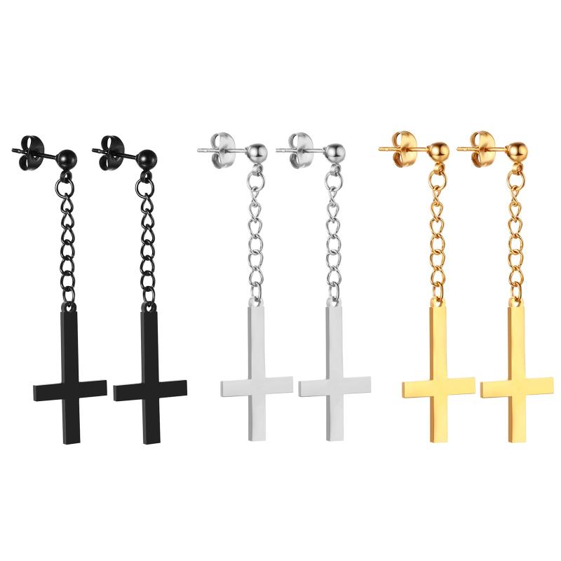 逆 十字架 クロス ピアス メンズ レディース ステンレス ピアス イヤリング シンプル ロック パンク ゴシック レトロ ヒップホップ シルバー ファッション アクセサリー 誕生日 記念日 クリ