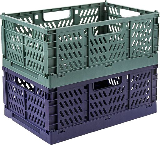 ViviBakieコンテナ折りたたみオリコンセット収納ボックス収納ケースバスケットフォールディングかごハンディコンテナフォールディング(ブルー+グリーン)