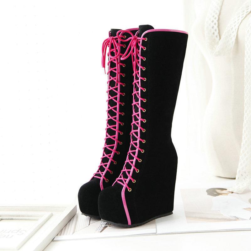 ・カテゴリ: レディースブーツ・対象性別: 女性・対象年齢層: 大人用・スタイル: フェミニン・デザイン: カジュアル・アッパー素材: 合成皮革・ソール素材: ゴム・ヒール形状: ウェッジヒール・ヒールタイプ: ハイヒール・靴の高さ: ローカット・筒丈: ロング・つま先形状: ラウンドトゥ・履き口の深さ: 浅め・留め具: レースアップ・柄: 無地・加工: スエード・ソール製法: セメンテッド・カラー展開: ブラック、ローズピンク・サイズ展開: 34, 35, 36, 37, 38, 39, 40, 41, 42, 43