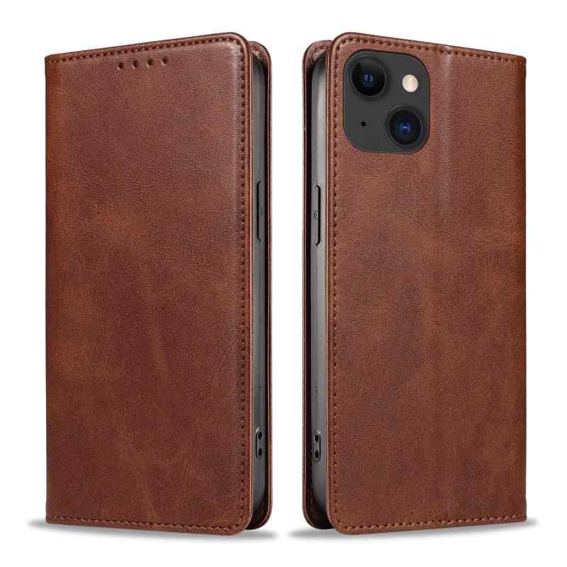 PinLiSheng 15 ケース 手帳型 本革 スマホケース 携帯カバー 財布型 レザー 軽量 薄型 手帳ケース 耐衝撃 耐摩擦 マグネット式 カード収納 スタンド機能(ブラウン)