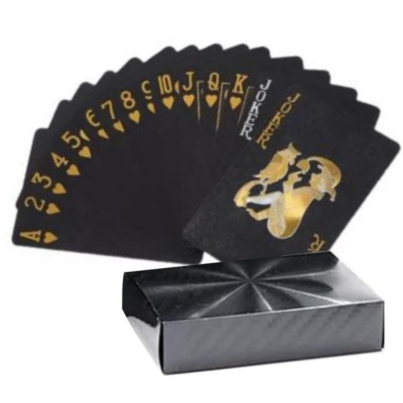 XSAJU トランプ プラスチック カード 折れにくい 防水 カードゲーム マジック 専用箱付き (ブラック×ゴールド)