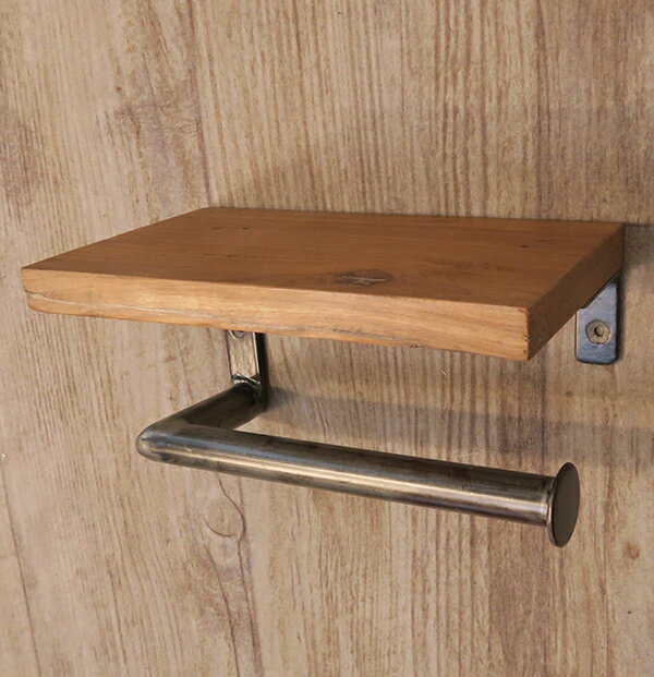 送料無料 トイレットペーパーホルダ シングル 木製 アイアン アンティーク ペーパーホルダー 棚 棚付き おしゃれ 収納 カバー 西海岸 ブルックリン 男前インテリア インダストリアル