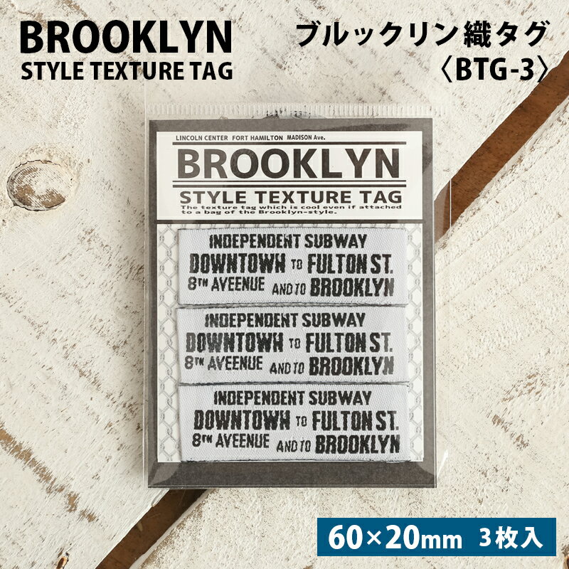 商品名 ブルックリン織タグ サイズ 縦 約20mm×横 約60mm 素材 ポリエステル 入り数 3枚入 ・縫い付けタイプのブルックリンタグ。 ・バッグや小物に付けるだけでアクセントに。 ※タグは折り返し加工済みです。【BTG-1】 【BTG-2】 【BTG-3】 【BTG-4】 【BTG-5】 【BTG-6】
