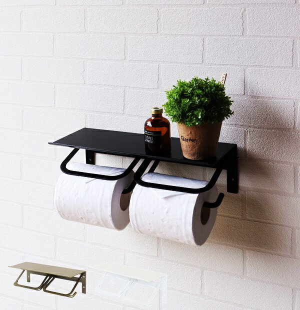 トイレットペーパーホルダー おしゃれ 2連 棚 収納 トイレットペーパー ホルダー ペーパーホルダーカバー アイアン スチール 木目調 北欧 アンティーク かわいい 韓国 男前 ビンテージ 西海岸 ブルックリン モダン シンプル 白 黒 ホワイト
