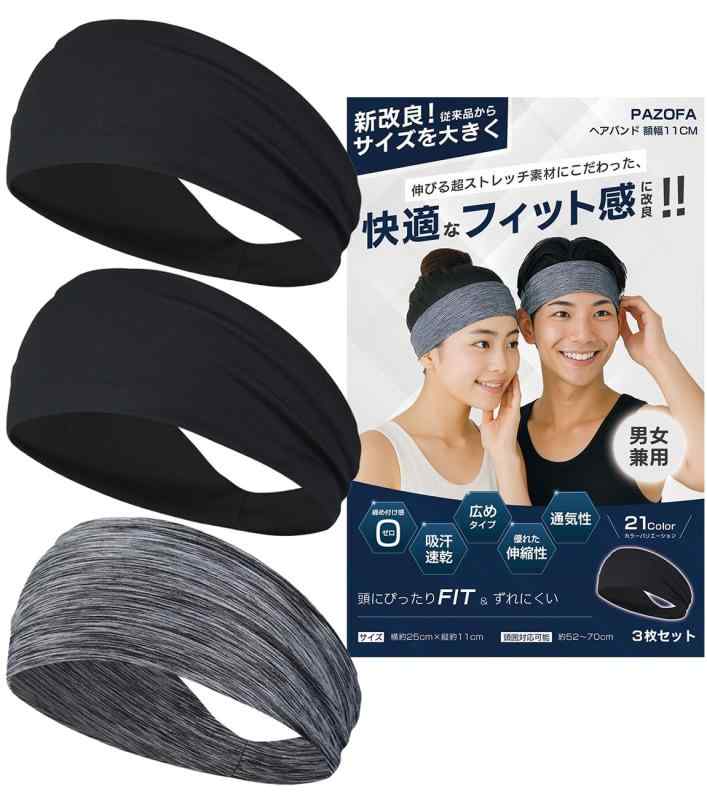 ヘアバンド メンズ 額幅11cm ヘッドバンド 汗止め スポーツ 幅広 薄型 バンダナ ヘアターバン ワイド 男女兼用 3枚セット