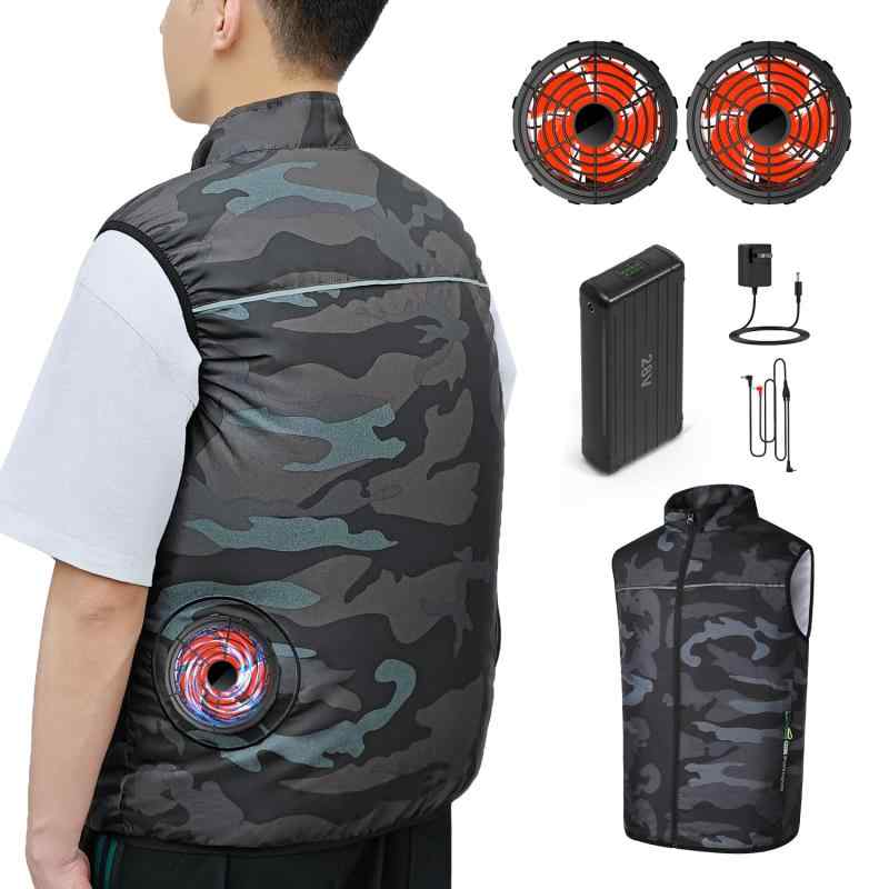 [] 冷却ベスト 大容量バッテリー付き 3段階風量調節 熱中対策 UVカット 軽量 薄型 レ スポーツ観戦用 男女兼用 猛暑対策