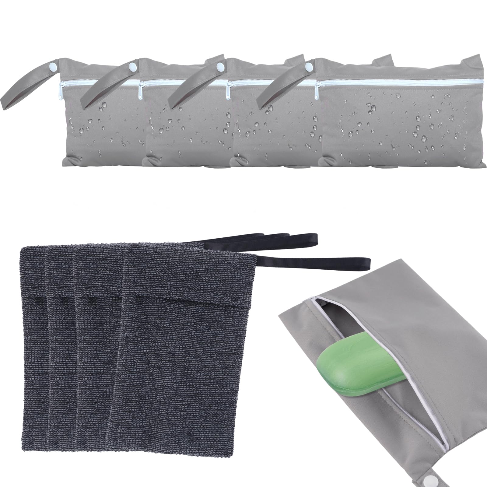 【送料無料】HOMMDECO ピンクトラベルソープバッグ 4個セット フェイスとハンドウォッシュ バスソーププロテクターバッグ 防水 漏れ防止 懸垂可能なポータブルトラベルギア(4つの角質除去メッシュ泡用ポーチ付き) 色:灰色 +灰色 -8個