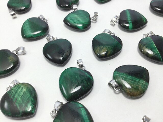 1個 グリーンタイガーアイ ペンダントトップ ハート シルバー 銀 32mm チャーム パワーストーン 天然石 ビーズクラブ