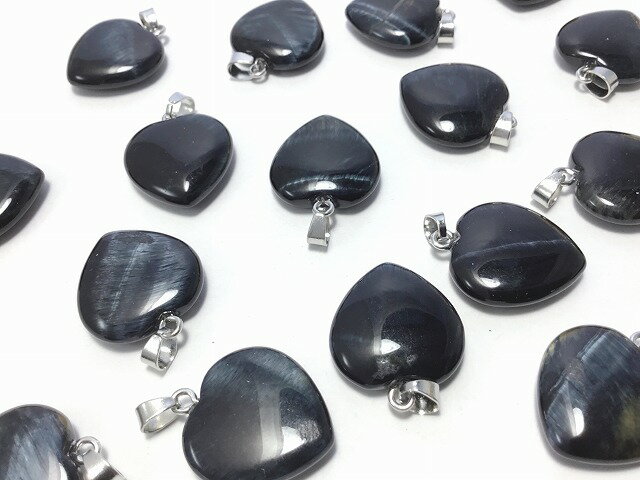 1個 ブラックタイガーアイ ペンダントトップ ハート シルバー 銀 32mm チャーム パワーストーン 天然石 ビーズクラブ