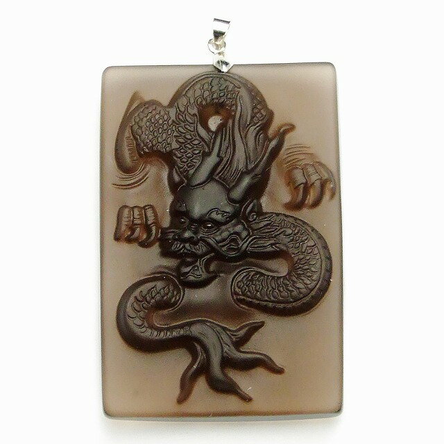 g3-47C A 龍 ドラゴン 彫り スモーキークォーツ ペンダントトップ 58×40mm 送料無料有 楽天最安値に挑戦 ブラジル産 天然石 パワーストーン