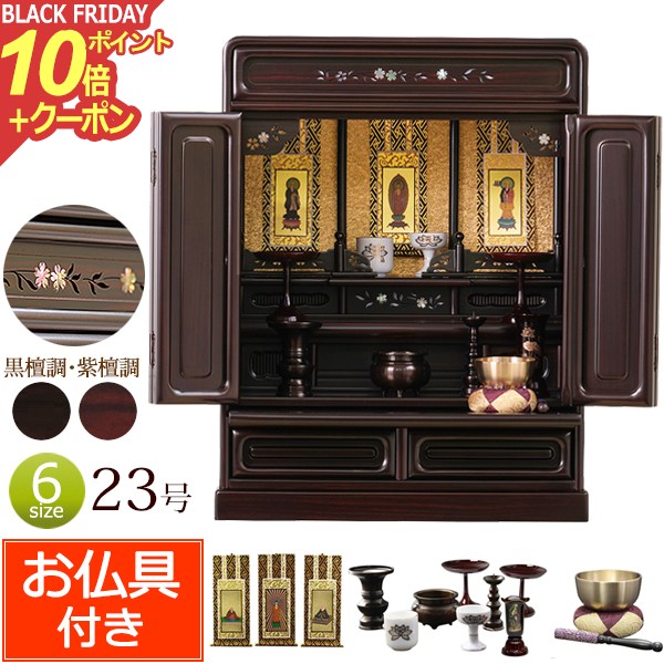 【ポイント10倍+クーポン】仏壇 仏具セット付き 上置 桜の螺鈿入り ミニ仏壇 ぼたん 23号 紫檀調 黒檀調 (仏具付き)【保証付き】 仏具セット 仏壇 仏具 掛軸 おりん セット ミニ 仏壇セット お仏壇 コンパクト仏壇 小型仏壇 浄土真宗 大谷派 浄土宗 曹洞宗 真言宗 新型