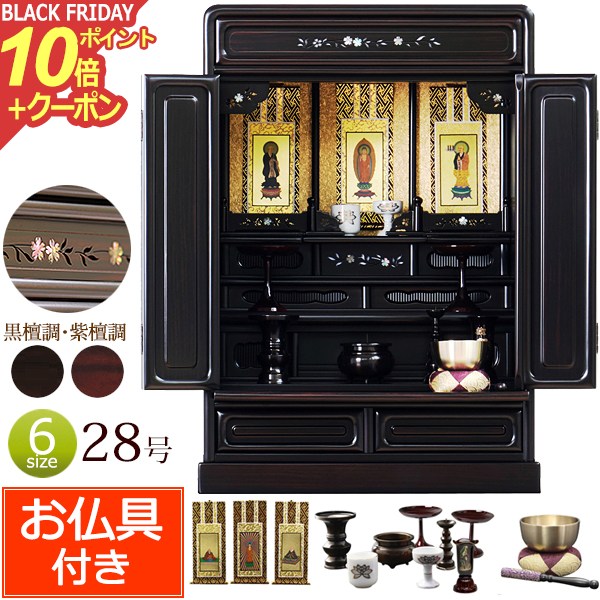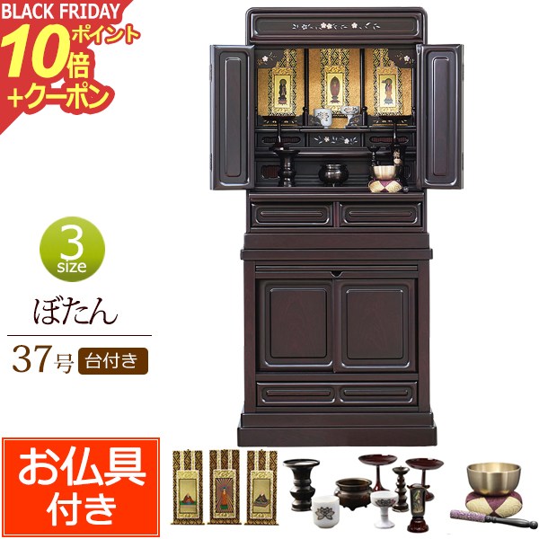 【ポイント10倍+クーポン】仏壇 仏具セット付き 桜の螺鈿入り ぼたん台付き 37号 紫檀調 黒檀調 (仏具付き)【保証付き】 仏具セット 仏壇 仏具 掛軸 仏壇セット お仏壇 コンパクト仏壇 小型仏壇 浄土真宗 浄土宗 曹洞宗 真言宗 臨済宗 禅宗 天台宗 日蓮宗 無宗派 新型