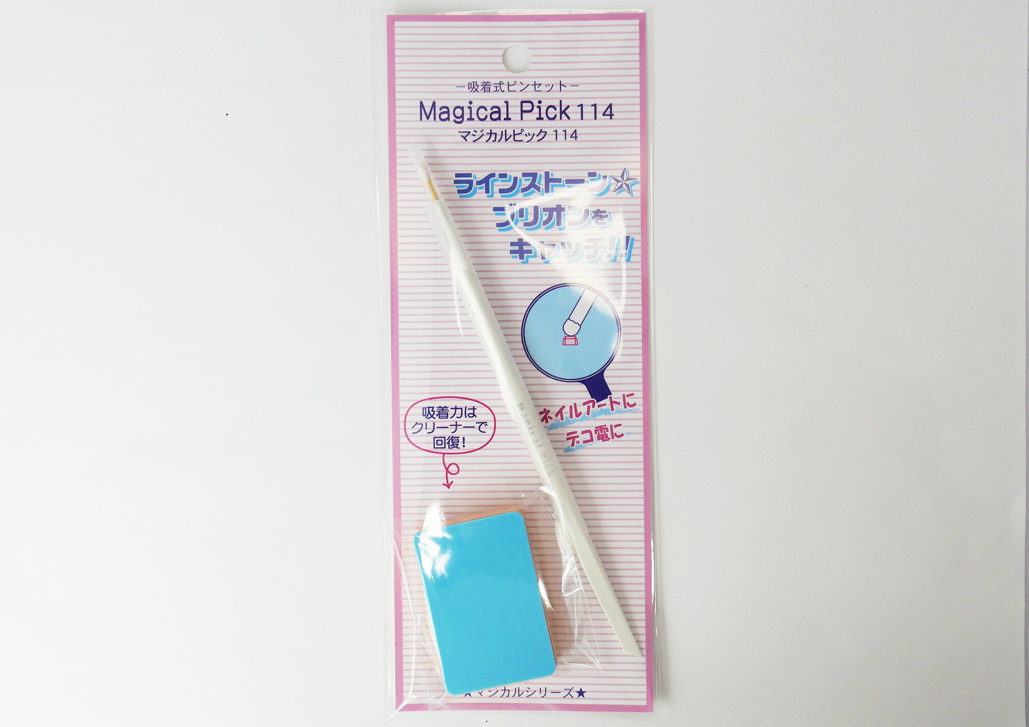 ラインストーンをキャッチ!吸着式ピンセットです。 先端の吸着樹脂がべたつくことなく適度な強さで繰り返し吸着します。同梱のクリーナーでなんどでも吸着力を回復できます。
