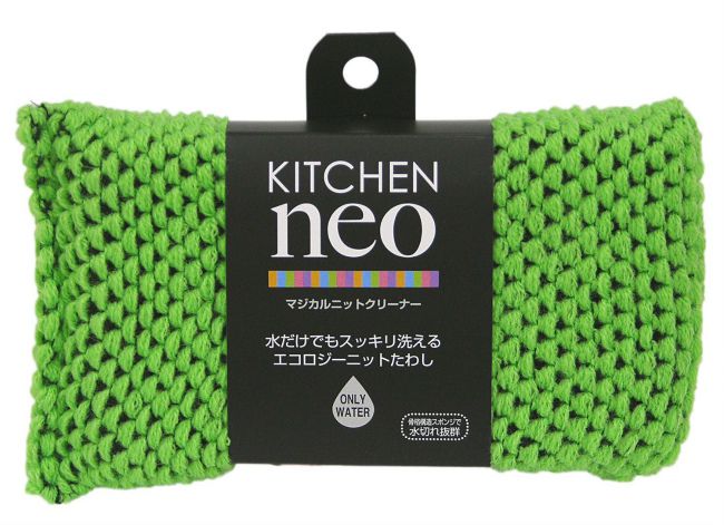東和産業 KN マジカル ニットクリーナー キッチンスポンジ 【 グリーン 】 約15×2.5×8.5cm 【メール便】 ( キッチン スポンジ 水だけ 台所 食器洗い 皿洗い 油汚れ 茶渋 )