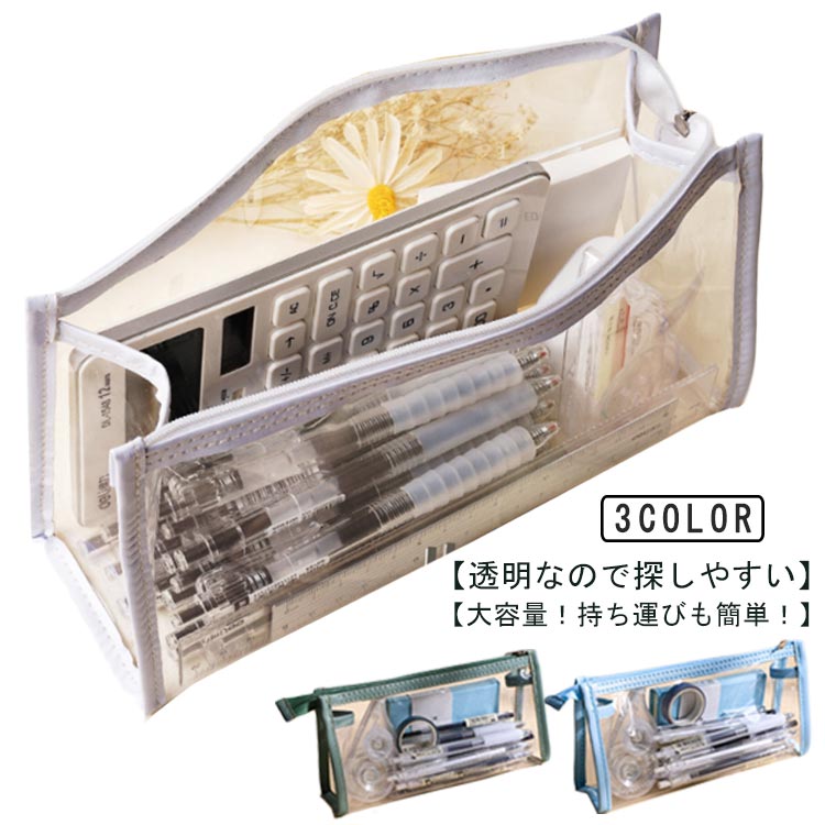 送料無料 ペンケース 筆箱 筆入れ 小物入れ 防水 クリア 透明 メイクポーチ コスメポーチ 文房具 筆記用具入れ 推しカラー 文具 ファスナー チャック 大容量 マチあり スクエア かわいい 透明 中が見える おしゃれ ガーリー シンプル 通学 小学生 中学生 高校生 大学生 男女