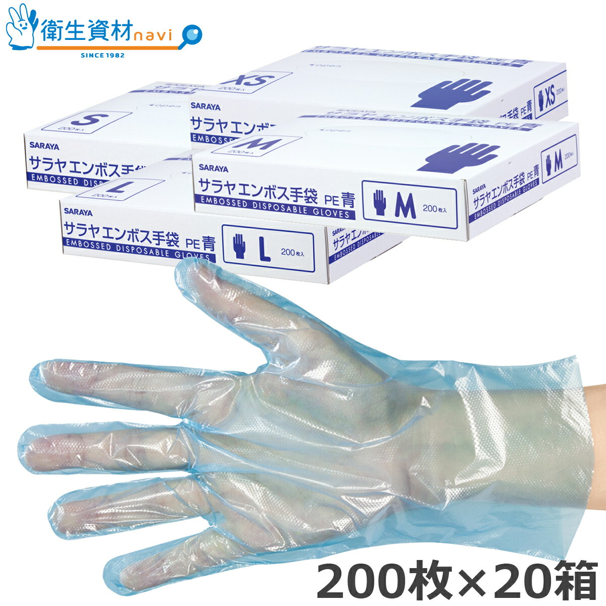1箱264円/サラヤ エンボス手袋 PE ポリ手袋 ブルー(200枚×20箱)【手袋 使い捨て 調理用手袋 使い捨て手袋 ポリエチレン 食品 エンボス手袋 ポリエチレン手袋 グローブ 食品衛生法適合】