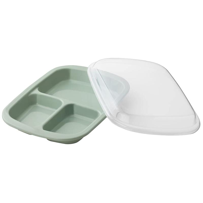アンドエヌイー(&NE) 楽ラク ランチプレート Rakura ラクラ recopo グリーン 幅26cm×奥行き18cm×高さ5cm 仕切り皿 日本製 フタ付き 抗菌加工 食洗機対応 レンジ 割れにくい 深め 耐熱 作り置き