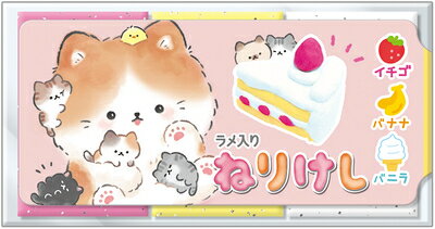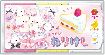 ■商品説明■ ラメ入り ねりけし 側面に柄が入って可愛くなりました! ●香り:ゴム色 イチゴ:ピンク、バナナ:イエロー、バニラ:ホワイト ●ショートケーキのレシピ付き 裏にレシピがついてるよ! ■仕様内容■ サイズ:H33×W64×D11mm 素材:ブチルゴム、PP ■特記事項■ ※絵柄・デザインなどは常に最新のものをお届けするため、予告なく変更になる場合がございます。 ※画像はあくまでも商品イメージになります。実際の商品と色や仕様が多少異なる場合がございます。 ※パッケージの写真と商品は多少異なる場合がございます。