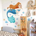 ウォールステッカー 子供 キッズ アニメ風 かわいい 海の生き物 マリン マーメイド 人魚 貝殻 シェル バブル 泡 PVC製 剥がせる 壁飾り デコレーション 子供部屋 リビング 寝室 浴室 玄関(x2)